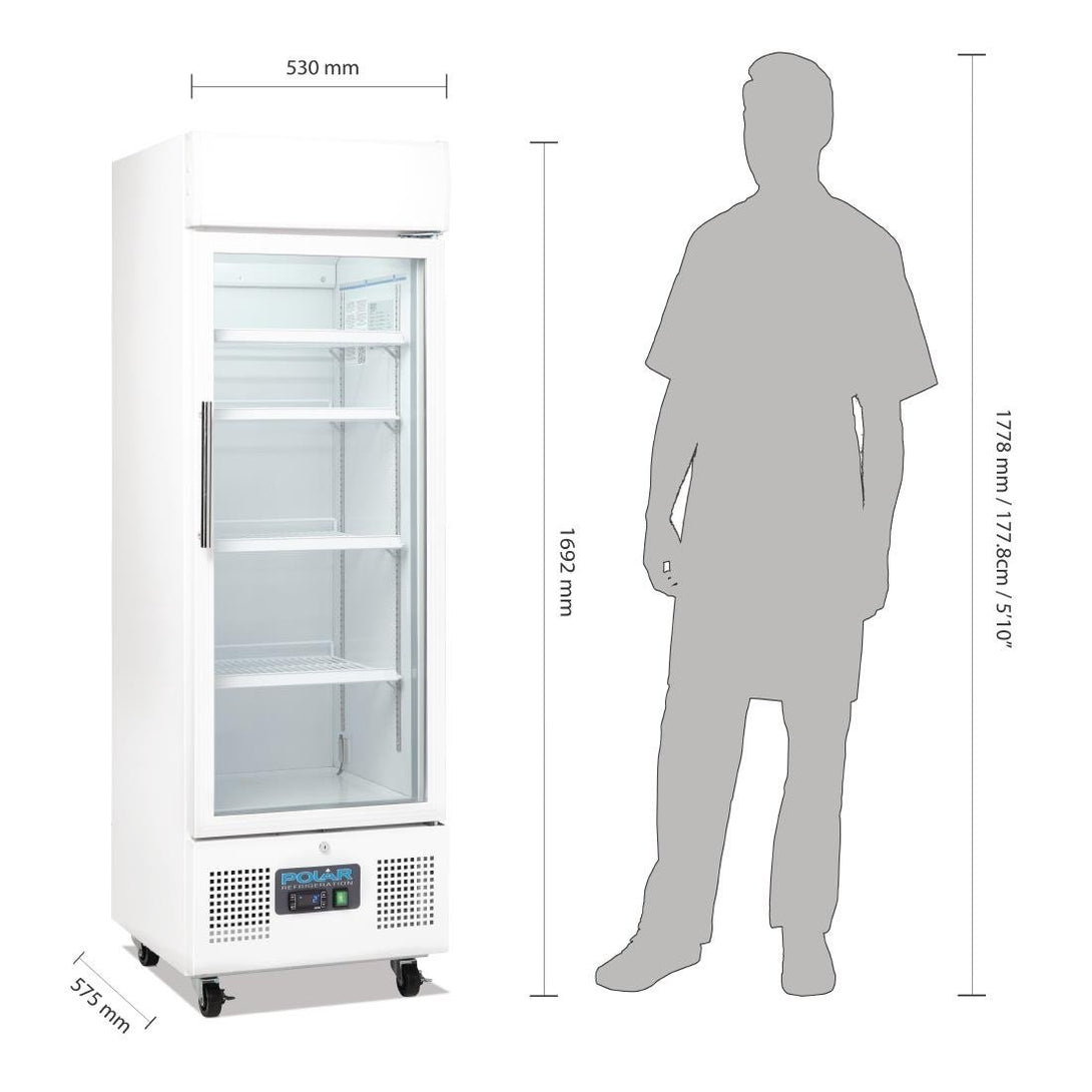 Elégantes vitrines réfrigérées hautes, positives et négatives, avec portes double vitrage pour la présentation et la vente.